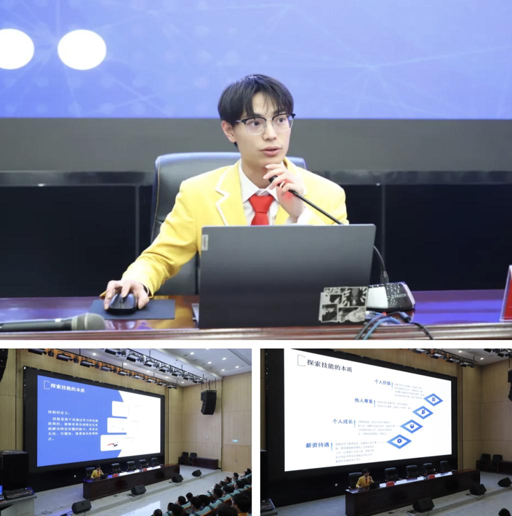 冠军引领拓视野,经验分享启新思。蒋家俊老师作为世界技能大赛自主移动机器人项目的金牌获得者,深耕于“技能竞赛”,专注于“成果转化”。他结合自身备赛参赛经历和感悟,阐述了技能人才的本质,过硬的技术、精益求精的工匠精神和创新思维;深入剖析了团队协作与问题解决的核心策略,传递正能量,引导学生树立正确的职业观念和价值观。