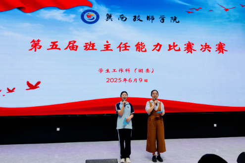 为深入落实立德树人根本任务,进一步加强班主任队伍建设,提升班主任的专业素养和育人能力,推动班级管理工作科学化、规范化、精细化,6月9日,我院在国际交流中心一楼报告厅举办第五届班主任能力比赛决赛。