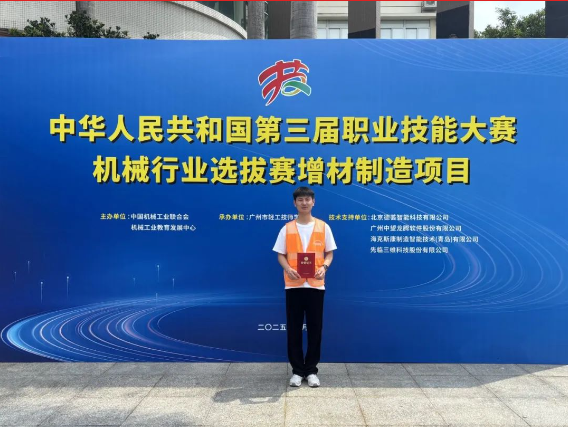 6月7日至6月9日,增材制造选拔赛在广州市轻工业技师学院举办。来自全国各地的31支代表队参与角逐。增材制造赛项围绕数字化设计、3D打印制造、设备调试三大核心任务展开竞赛。项目深度融合增材制造产业“模型设计-工艺规划-设备操作-成品优化”的全流程实践,要求选手不仅掌握三维建模与创新设计、3D打印工艺参数优化、设备维护调试等核心技术,还须具备材料特性分析、结构力学仿真、打印缺陷诊断及复杂项目综合管理等综合能力。竞赛中,选手需结合材料学、力学等多学科知识,完成从创意构思到高精度成品的全流程挑战,全面检验其技术应用与问题解决能力 。教师刘萧硕指导的2023技师数控班学生张富豪获得一等奖的好成绩。
